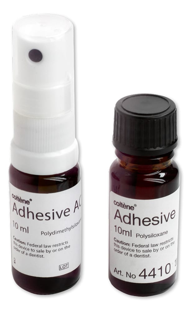 COLTENE Adhesive provides an outstanding bonding solution between impression trays and silicone-based dental impression materials. A thin layer of COLTENE Adhesive ensures a secure hold of the impression on the tray walls and allows easy removal from the oral cavity.