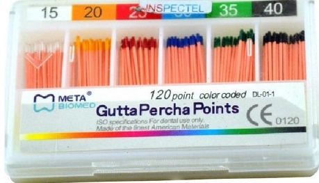 Meta G.P Points are standardized gutta-percha cones used for permanent obturation of root canals after cleaning and shaping. They are manufactured from high-quality gutta-percha and radiopaque fillers, ensuring dimensional stability, flexibility, and clear radiographic visibility.