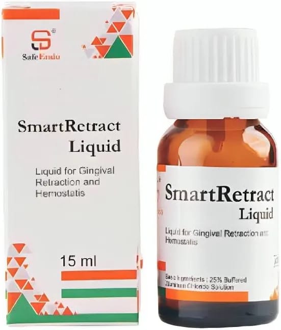 SmartRetract Liquid is a high-quality gingival retraction liquid formulated to assist dentists in achieving clear exposure of tooth margins during restorative and prosthodontic procedures. It helps temporarily retract the gingiva while controlling minor bleeding and moisture in the working area.